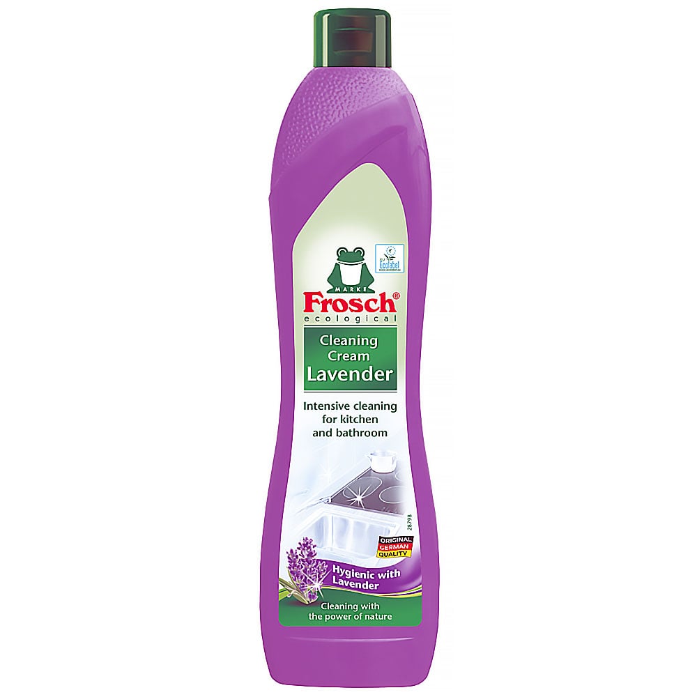 Výborně odstraňuje všechny druhy nečistot, jako mastnotu, zbytky mýdla a vodní kámen ze všech keramických, smaltovaných, nerezových a skleněných povrchů. Frosch Čistící krém Levandule funguje na bázi mramorové moučky a zanechává příjemnou levandulovou vůni. Nepoužívejte na umělohmotné povrchy, např. akryláty nebo plexisklo.