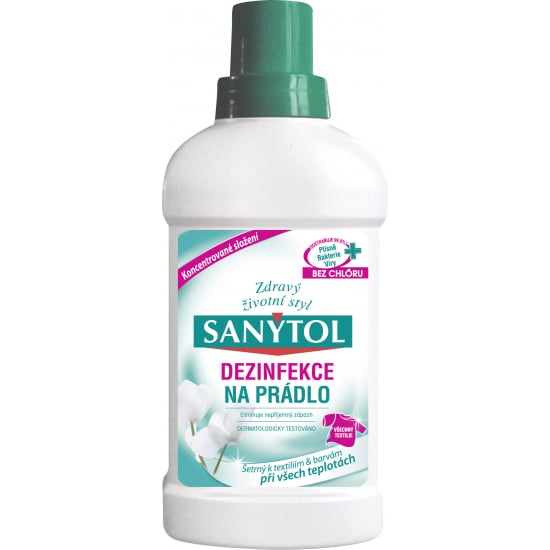 Bakterie a plísně vyskytující se v prádle a oblečení jsou zdrojem zápachu a mohou přenášet nemoci nebo způsobit podráždění kůže. SANYTOL vyvinul dezinfekci na prádlo, která ničí bakterie, plísně, viry při všech teplotách. Je ideální pro sportovní oblečení, spodní prádlo, bytový textil (hadry na podlahu, utěrky, ručníky atd.), textil, který se dostává do kontaktu se zvířaty, ložní prádlo pacientů apod. Doporučuje se přidávat k praní v případech infekce nebo během epidemie (chřipka, gastroenteritida…).