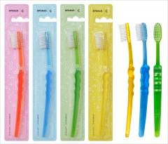 STŘEDNÍ-Větší hlava je osazena vlákny s rovným zástřihem. Prohnuté držadlo se zvlněnou střední částí umožňuje snadné držení, přesnou kontrolu kartáčku při čištění a dobrý dosah ke všem zubům.